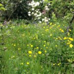 Well with these words fresh in my mind and a family legacy to build on, my own bit of wild  buttercup gardening was set in motion.What has been the result and how it is progressing will be the subject of my forthcoming regular accounts. In order to set the scene, as Jarman says, “picture this”.  The garden around our Innisfree’ bungalow has been divided into distinct zones . On one side, facing north west, we have two hedges, one beech, the other mixed. It encloses two flower beds. A large creeper clad pergola separates this from a large pond and bog. This in turn merges into a mini orchard of apple and pear trees meadow area. Turn left and once through a willow arbour, the south east facing garden is oval shaped with rough meadow flanked by shrubs and herbaceous borders. Three flowering cherries stand at the gardens perimeters along with a hornbeam and koreana pine. Bringing this rough outline of a picture to life will be the ongoing challenge. Alongside will be tales from our allotment, just fifteen yards down the road, complete with soft fruit, a green house home to a grape vine and runs for four hybrid hens.